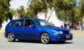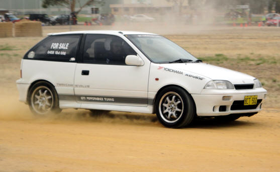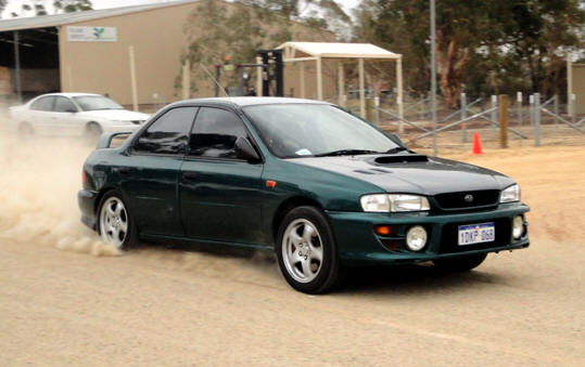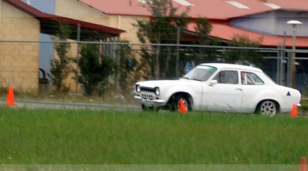 Andrew Mawson drove exceptionally well - and without the aid of knobbly tyres managed to take out the top spot. Graeme Morey, sharing Andrew's car also drove really well, considering his lack of experience in the car. Several girls entered. Natalie Blank drove her first event in a manual car. and first event in the supercharged Mazda - and even managed a couple of spins. Sharon Payne drove fast until her car was sidelined. Some racetracks have a corner named "Hell Corner" - well, now Dowerin's course has "Helen's Corner". And the little Volvo also dislodged a street sign on its last lap...