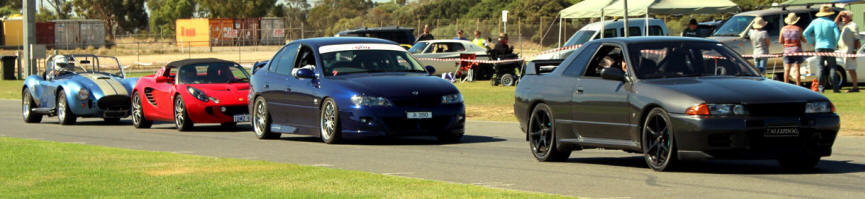 A great variety of different types and brands of cars lined up for the first WA Motorsport Promotions event, held on a lovely, sunny day at the Kwinana Motorplex.