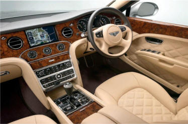 But back to the driving experience... It's very quiet, and while the engine is not silent, the feeling of luxuriousness is amplified by the quietness. All the power assisted controls operate with gliding precision and silence. On start-up, a polished wood panel disappears into the dashboard to reveal the SatNav and control screen. There's a clue that the Mulsanne shares some technology with other cars in the Volkswagen Group here - some of the screen graphics are the same as Skoda and Volkswagen cars.