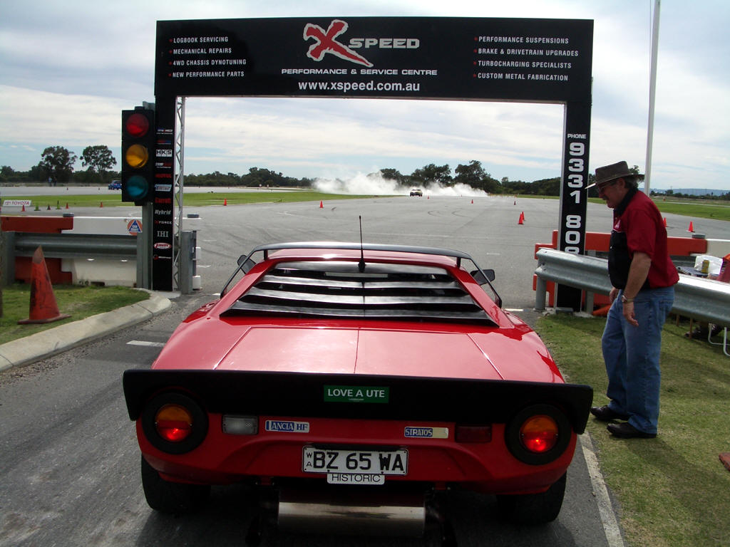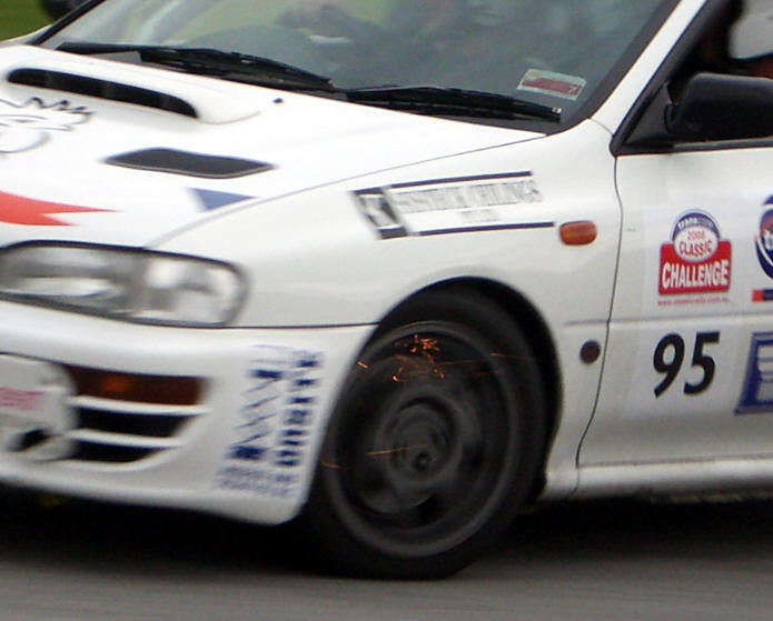 A night stage was held under lights in Mandurah, and this was thoroughly enjoyed by competitors and spectators alike. The showers of glowing brake pad material from some of the high performance cars was a great sight. But not much compared to seeing the sparks off the Monaro's tyres through the smoke...