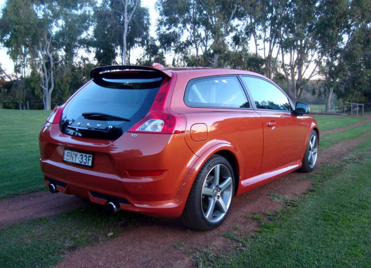 Volvo has recently begun selling the updated version of their small coupe, and the facelift really worked. With R-Design Volvo adds colour coding of parts normally black, with deeper side skirts, 17-inch alloy wheels and minor details such as aluminium-colour trim sections around the foglamps and on the mirrors as well as twin tailpipes, and it makes the sleek coupe look very sporty. The shape is pretty good anyway, though the styling at the back is overly complicated and messy. The deep rear window glass harks back to Volvo's classic 1800ES of the early 1970s.