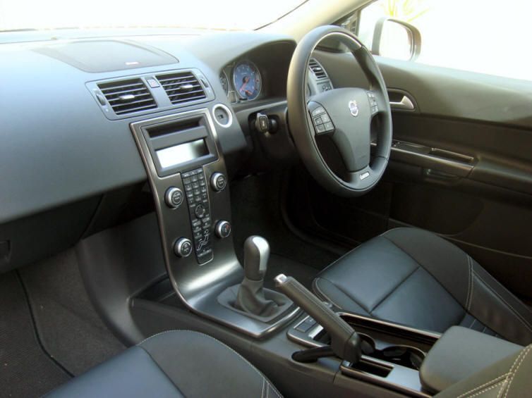 Inside, the cabin has a sporty feel, with excellent front seats, nicely trimmed in a combination of leather and what Volvo calls Lecsand - which sounds like Ikea-speak for vinyl - but it's nice. The driving position is low and sporty, but it's not a hard car to get into or out of. There's Volvo's trademark 'floating' console, with a different finish for each version of C30.