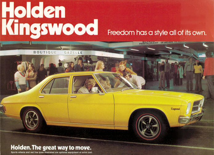 The Kingswood was the car a real Aussie bloke would drive. A proper, big, tough, no bull kind of a car. You could 'hang the tail out' on a dirt road, and if you had the wagon, you could also chuck your kids in the boot. And your mate's kids. Of course, he'd only had Holdens before - like his father before him. Of course, he would never consider buying a Ford. His Kingswood was a much better car than the model he'd had before, and that was what mattered. And was the only method of judgement...