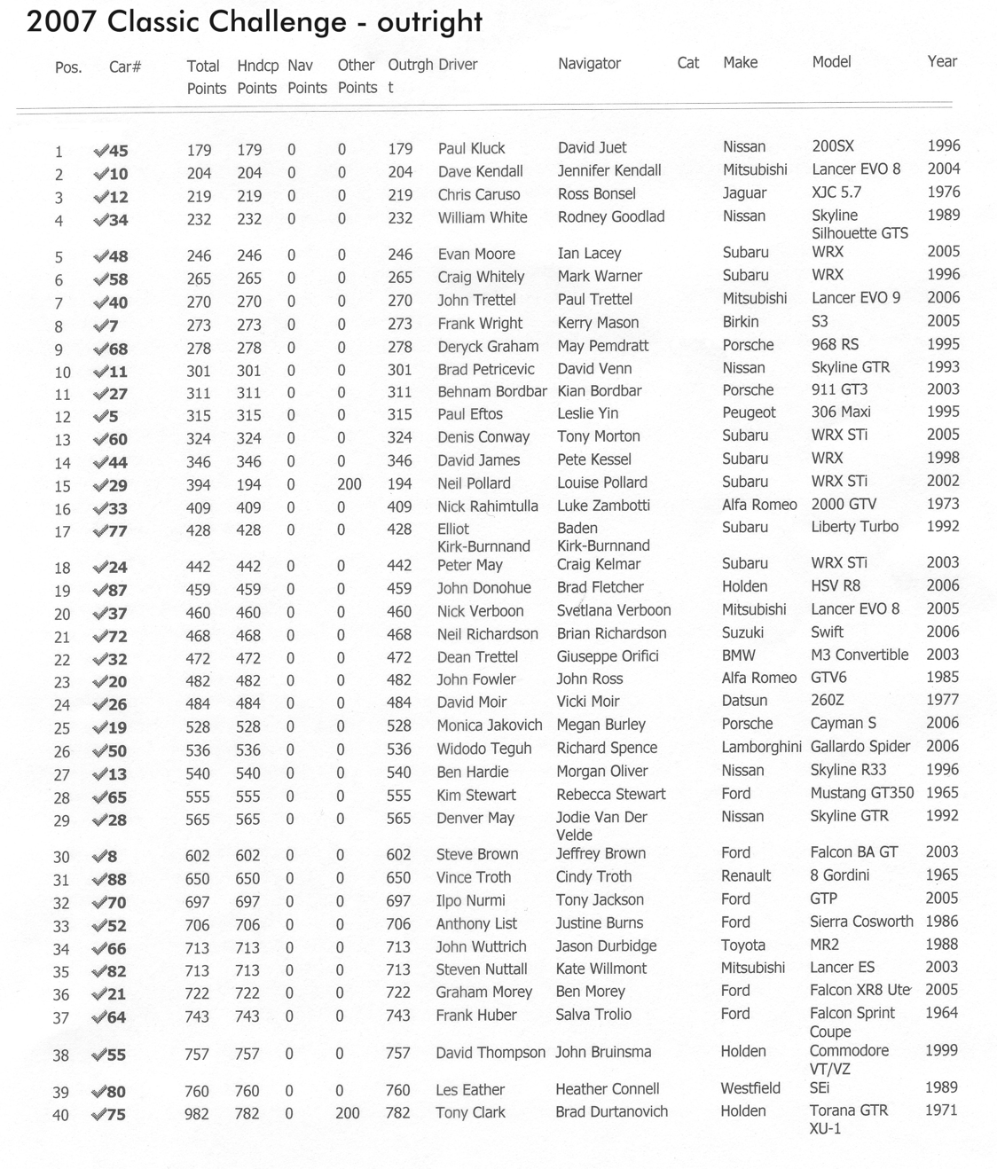 As they say, The event has been run and won. What a brilliant event the 2007 Classic Challenge was! Compliments have been pouring in to the organizers for what many are claiming was the best touring road rally they've been involved in. Even the hard working officials enjoyed themselves.