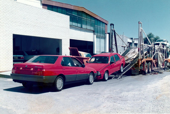 New Alfa Romeo 33, 75, 164s arrive at Quattro Motors, 1990 - Trent Chellingworth