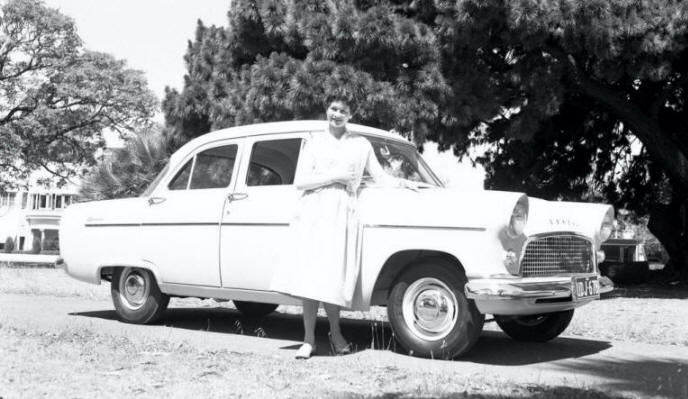 Renault Fregate at Diesel Motors, probably 1958. Note in the showroom a 300SL Gullwing that visited WA for a period.